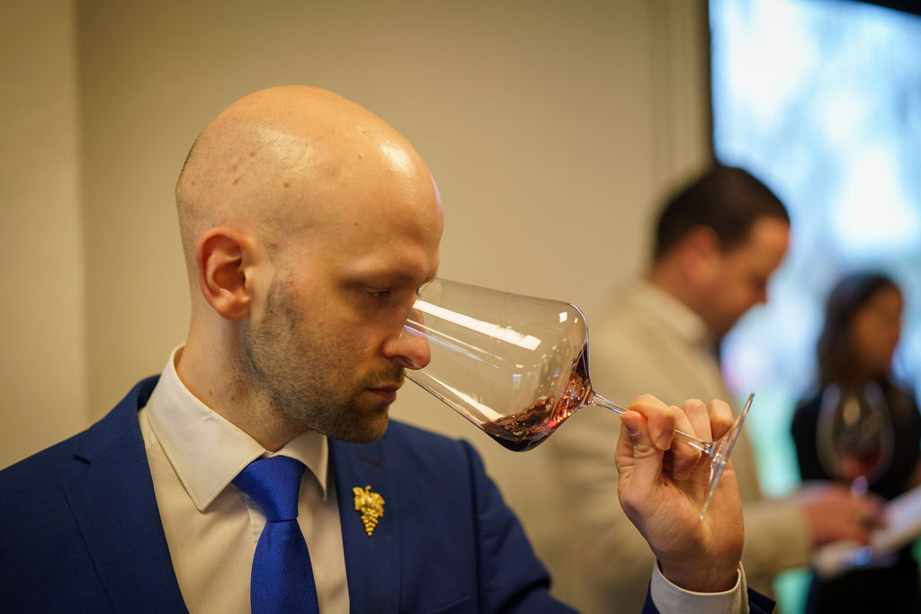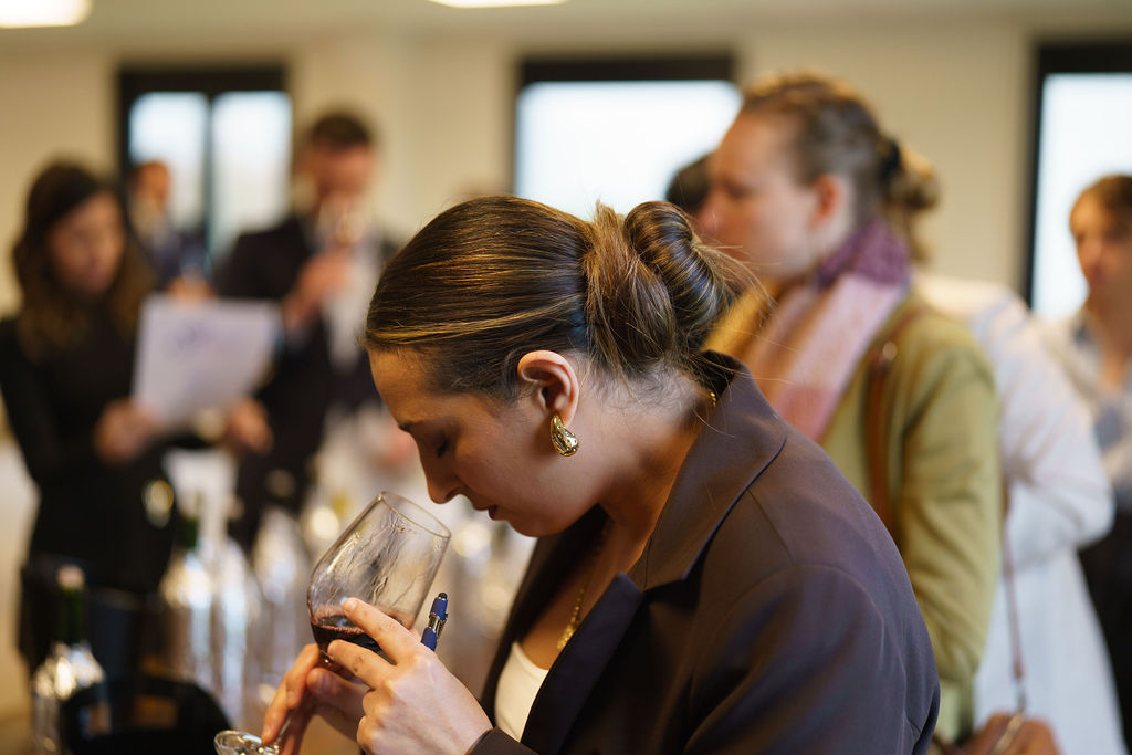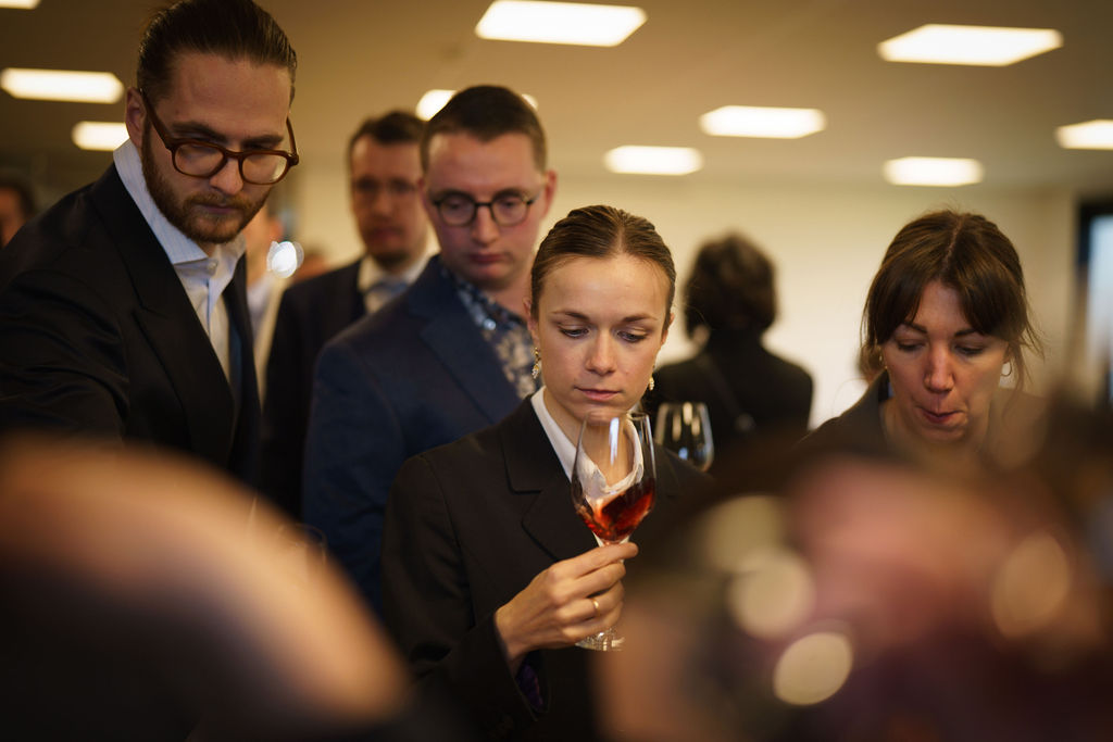Deze keer moesten de kandidaten tien wijnen blind proeven en vervolgens de pinotagewijnen* eruithalen en bepalen in welk glas ze zouden serveren. Niet alleen hun smaakvermogen, maar ook hun technische kennis, argumentatie en communicatieve vaardigheden waren bepalend.